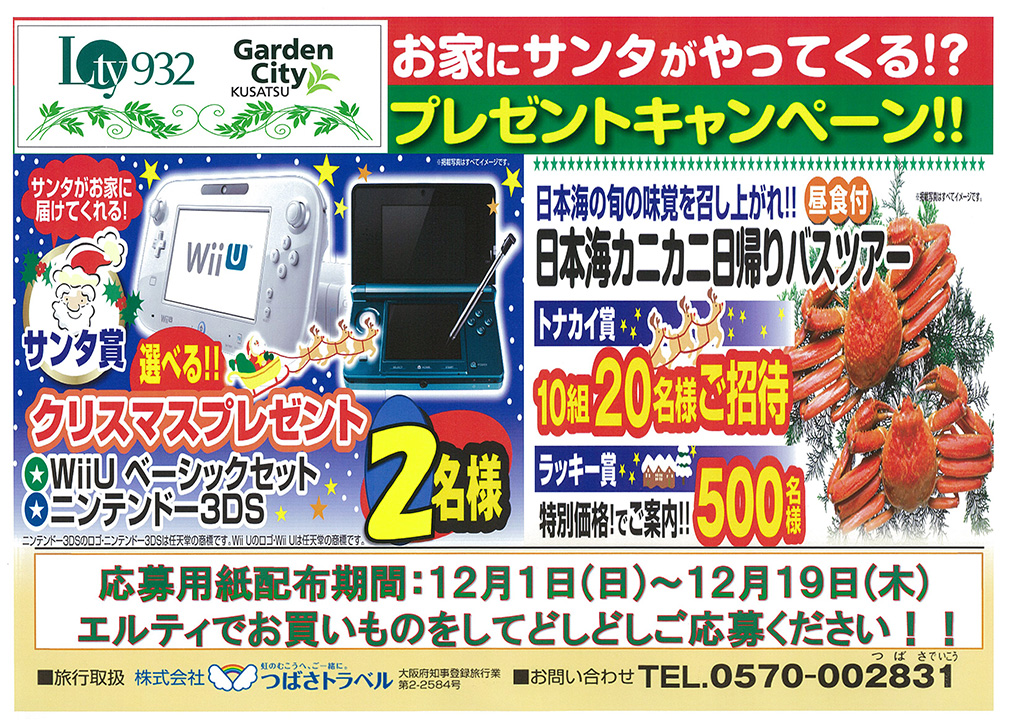 12月1日から19日までの間、エルティ・ガーデン商店会加盟店でのお買い物、ご利用いただいたお客様に、