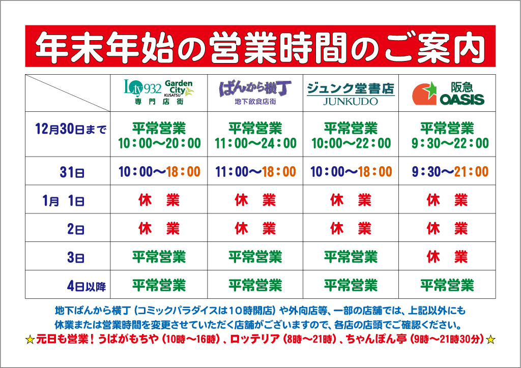 今年度につきましては、下表のとおり営業いたします。